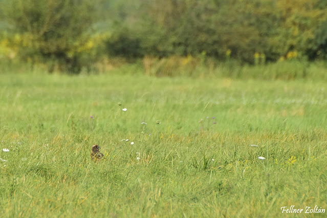 Vasárnap reggel-délelőtt néztem meg a Pápa környéki revíreket. A Kolóniánál kezdtem. Odaérkezésemkor 5 fiatal hamvas rétihéja repkedett a levegőben. Örömteli hír, el is foglaltam a megfigyelőpontomat, ahonnan sikerült is kideríteni, hogy a "bal oldali" pár 2 fiatalt, míg a "jobb oldali" pár 3 fiatalt reptetett ki. Időztem kicsit a területen, de a szülők közül csak az öreg tojó jött körbenézni a fiatalok háza táján. Élelem nélkül jött és gyorsan távozott is. Én is így tettem.